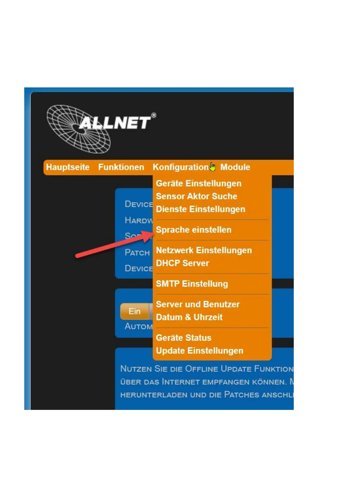 Settings under "Configuration" > "Language Setting" You can choose between Chinese, German,