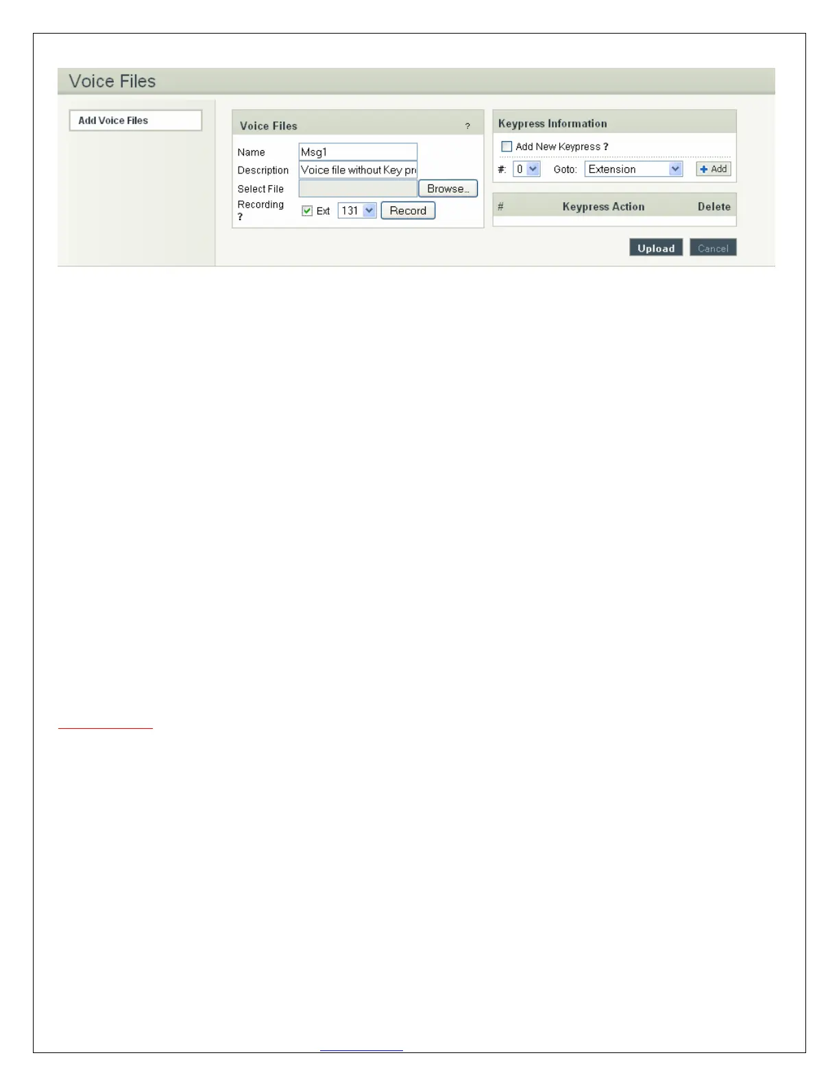 Keypress options are available to the caller when a Voice File is played back through an IVR. Depending