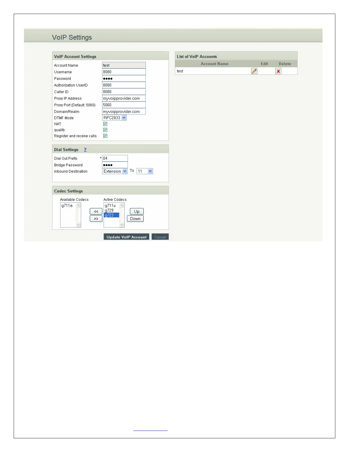 5. Caller ID: Caller id given here will be displayed to the other end for outgoing call using this VoIP