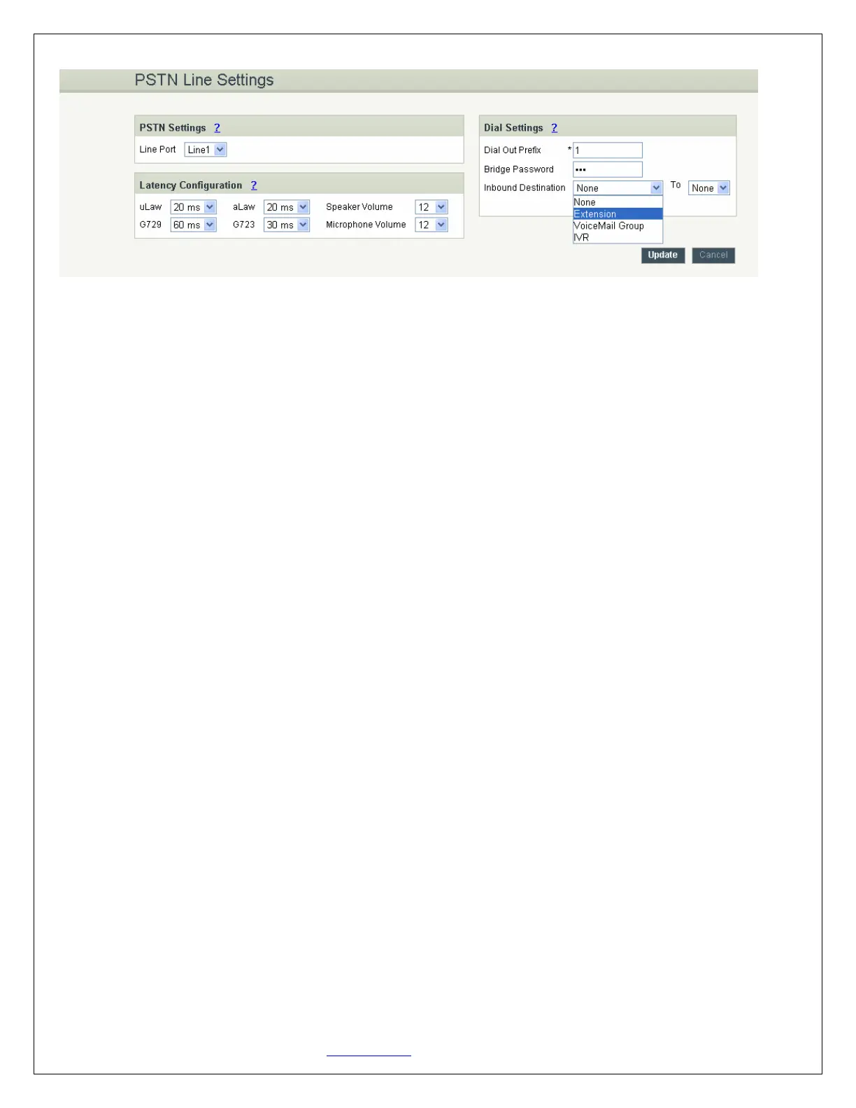Once the settings for the PSTN line were made click on the update button and then click on the apply