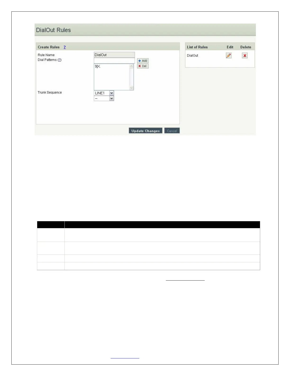 When you have finished adding your DialOut Rules, click the Update Changes button.