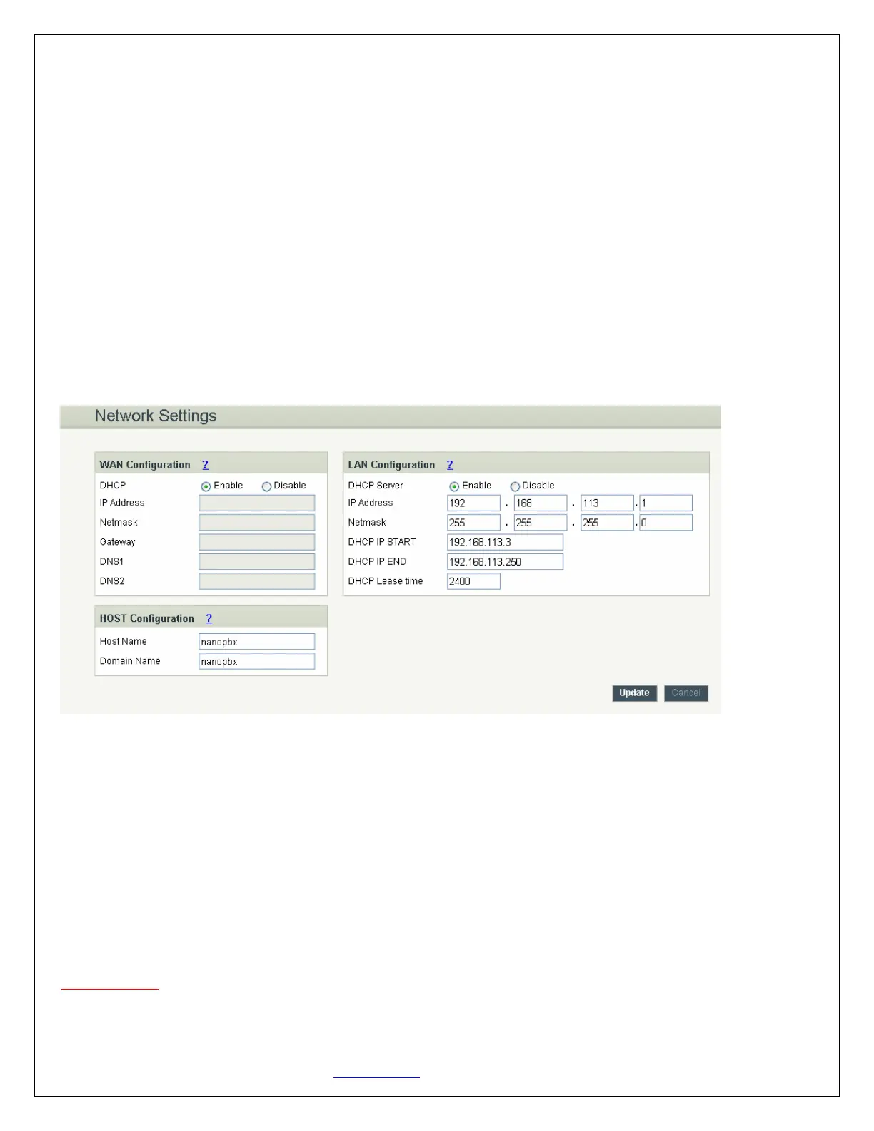 1. DHCP: when enabled and a DHCP server is available, the NanoPBX will auto configure itself. If