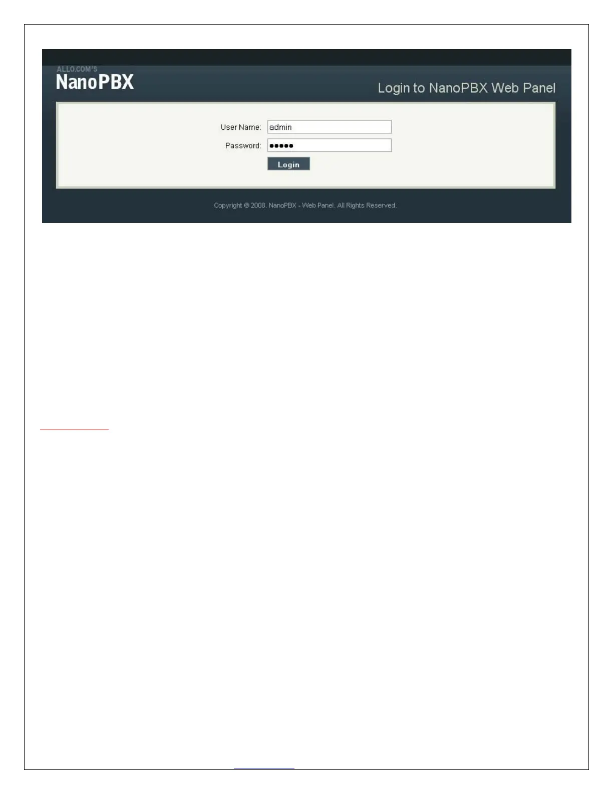 enter the NanoPBX web panel. To change the password, please refer to the SETTINGS > General section