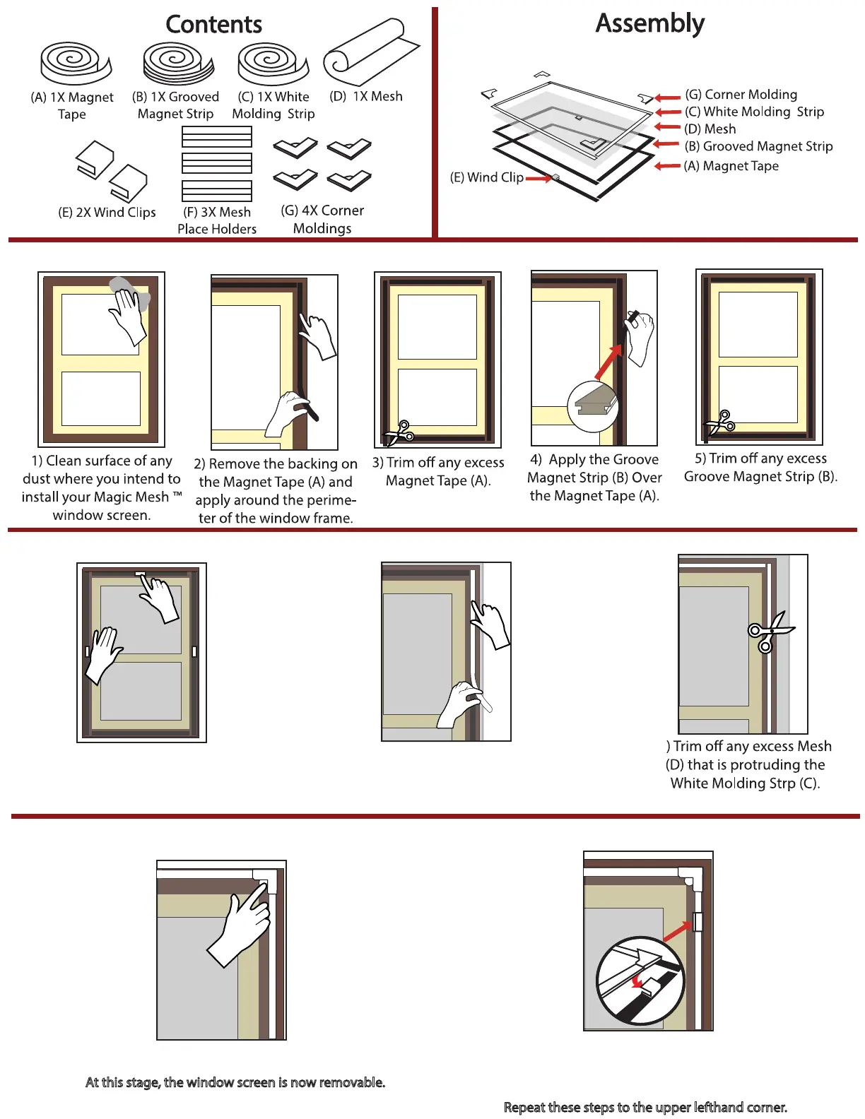 Wind Clip (E) onto the magnet Strip (A). Slide the window