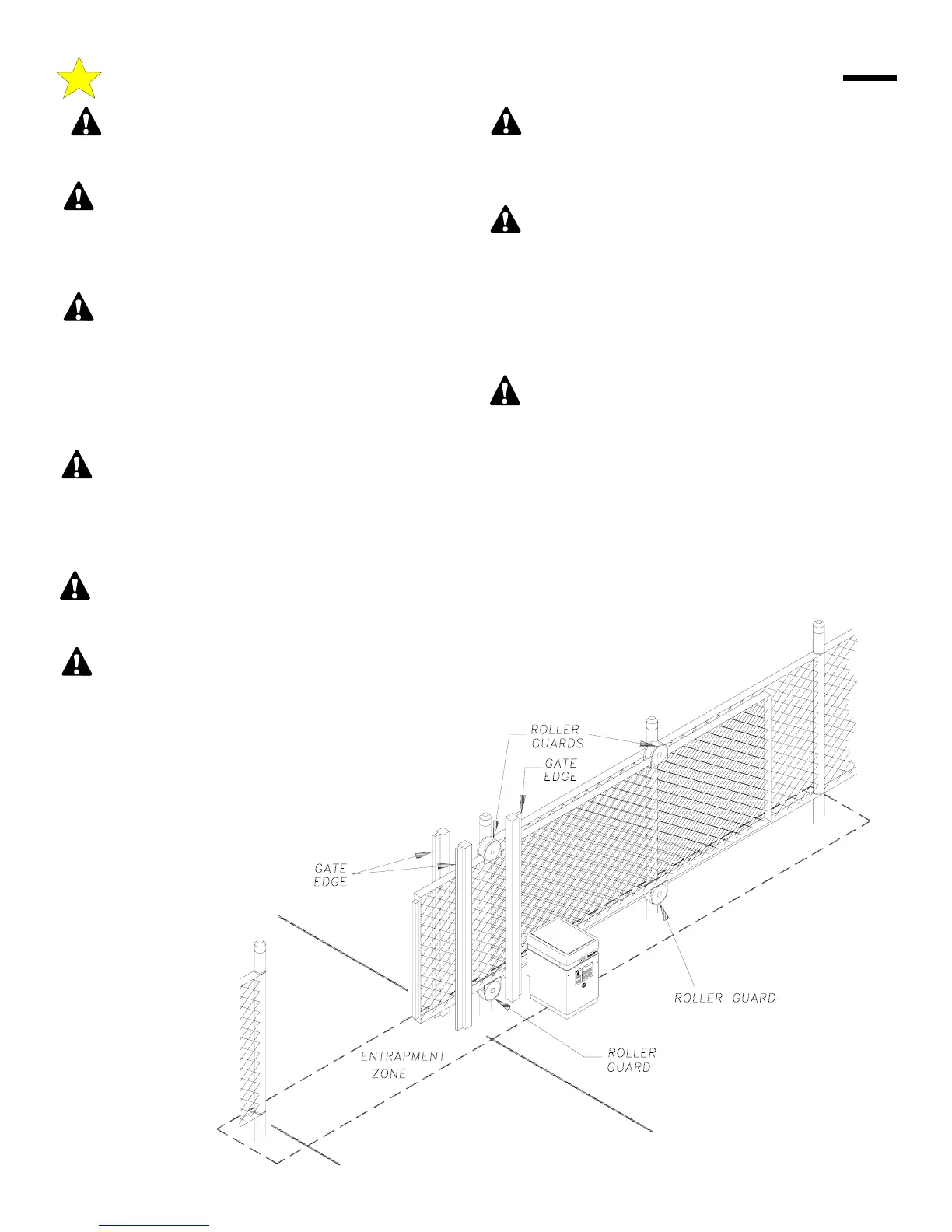 near or on the gate. Gate may be activated without notice. Do not