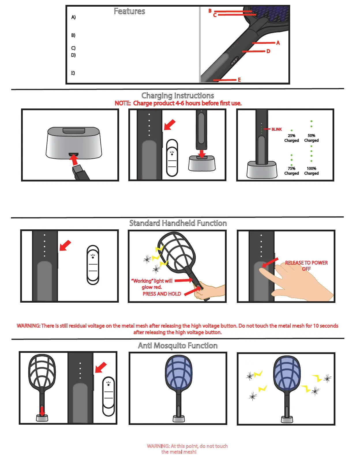 NOTE: Charge product 4-6 hours before rst use.
