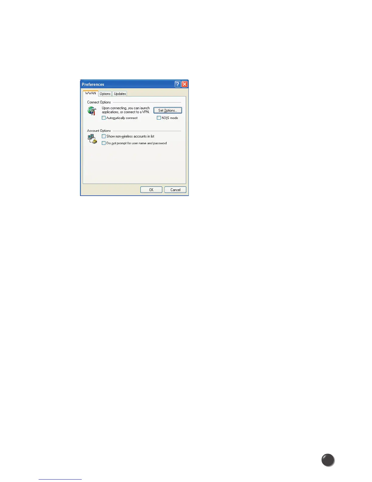 Set Options . . . : This is used to set various WWAN connection settings. See below.