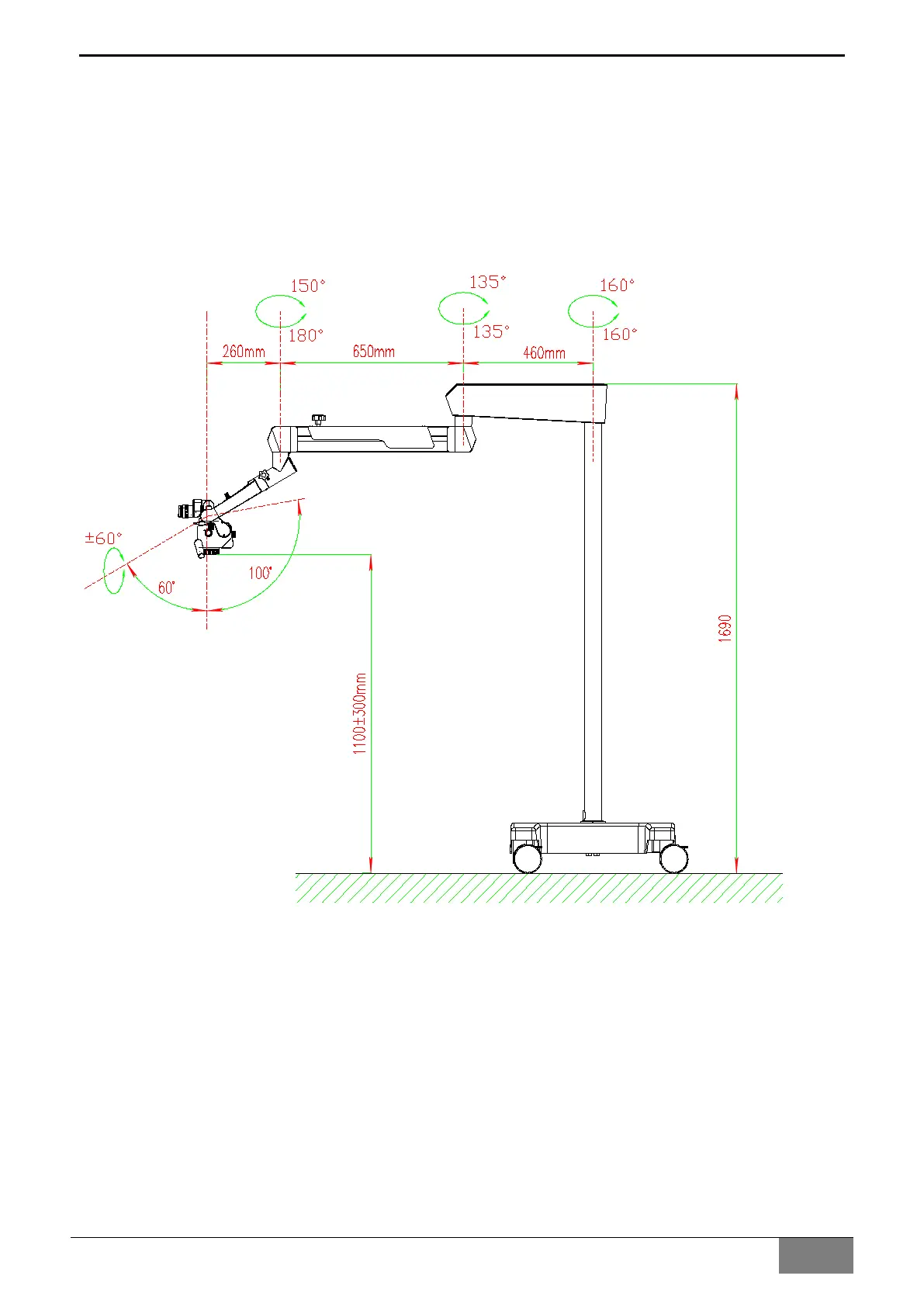 The basic dimensions of the whole machine and the motion range of the joint are shown in the following