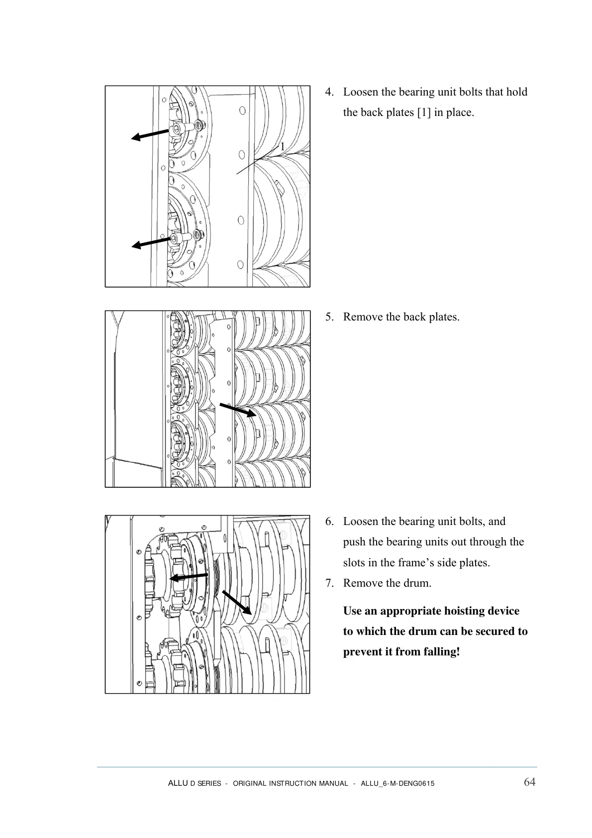 6. Loosen the bearing unit bolts, and