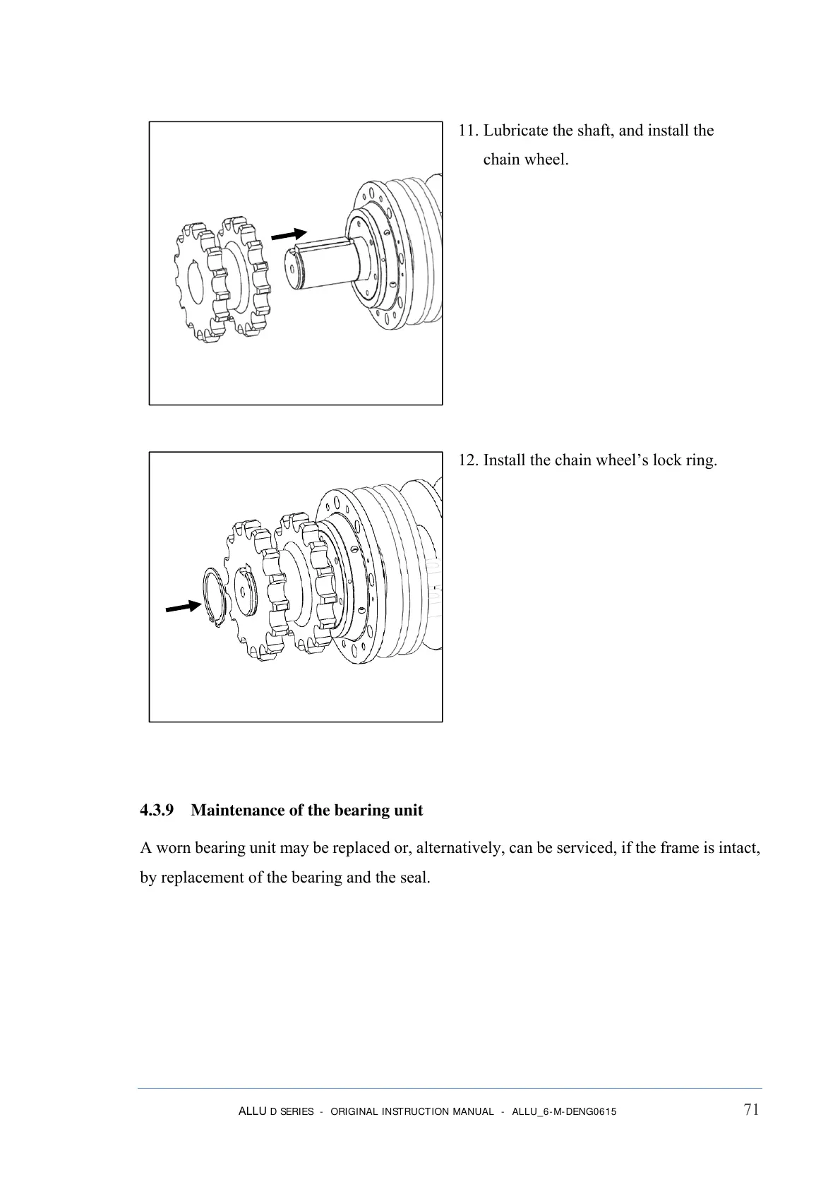 12. Install the chain wheel’s lock ring.