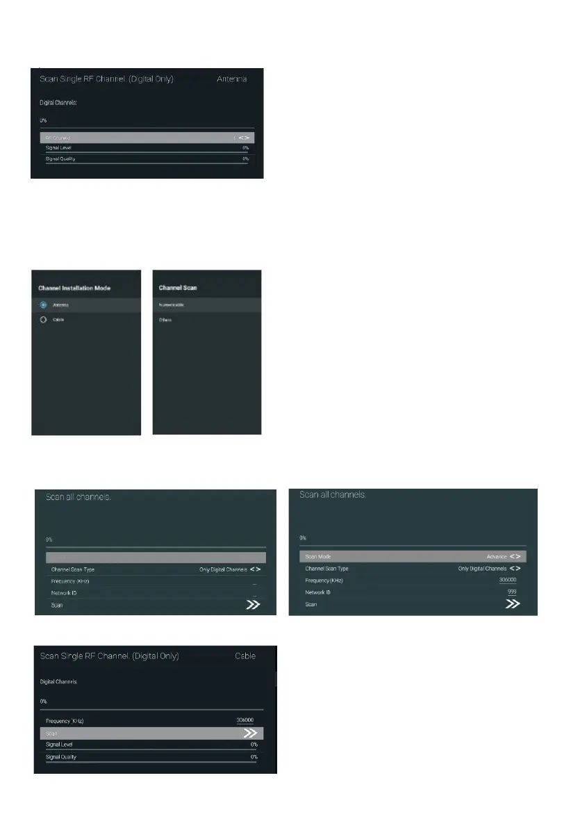 Scanare RF Singulară: căutare manuală DTV, apăsați stânga/dreapta după selectarea canalului RF și