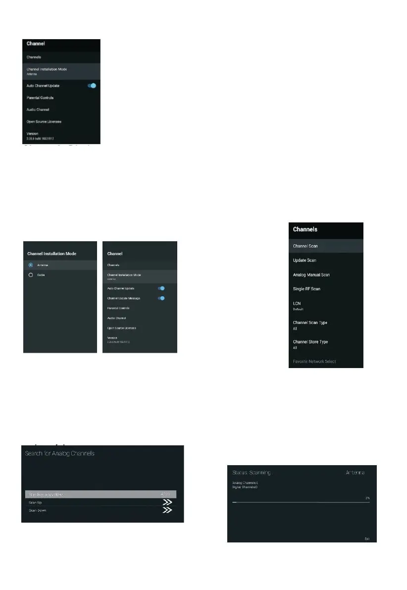 Canale: Afișează submeniul de scanare bazat pe diferite moduri de instalare a