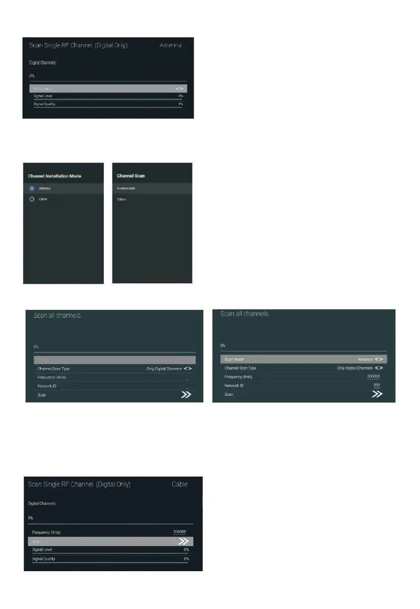 1. Meniu->Setări->Canal->Mod Instalare Canal, selectați Cablu.