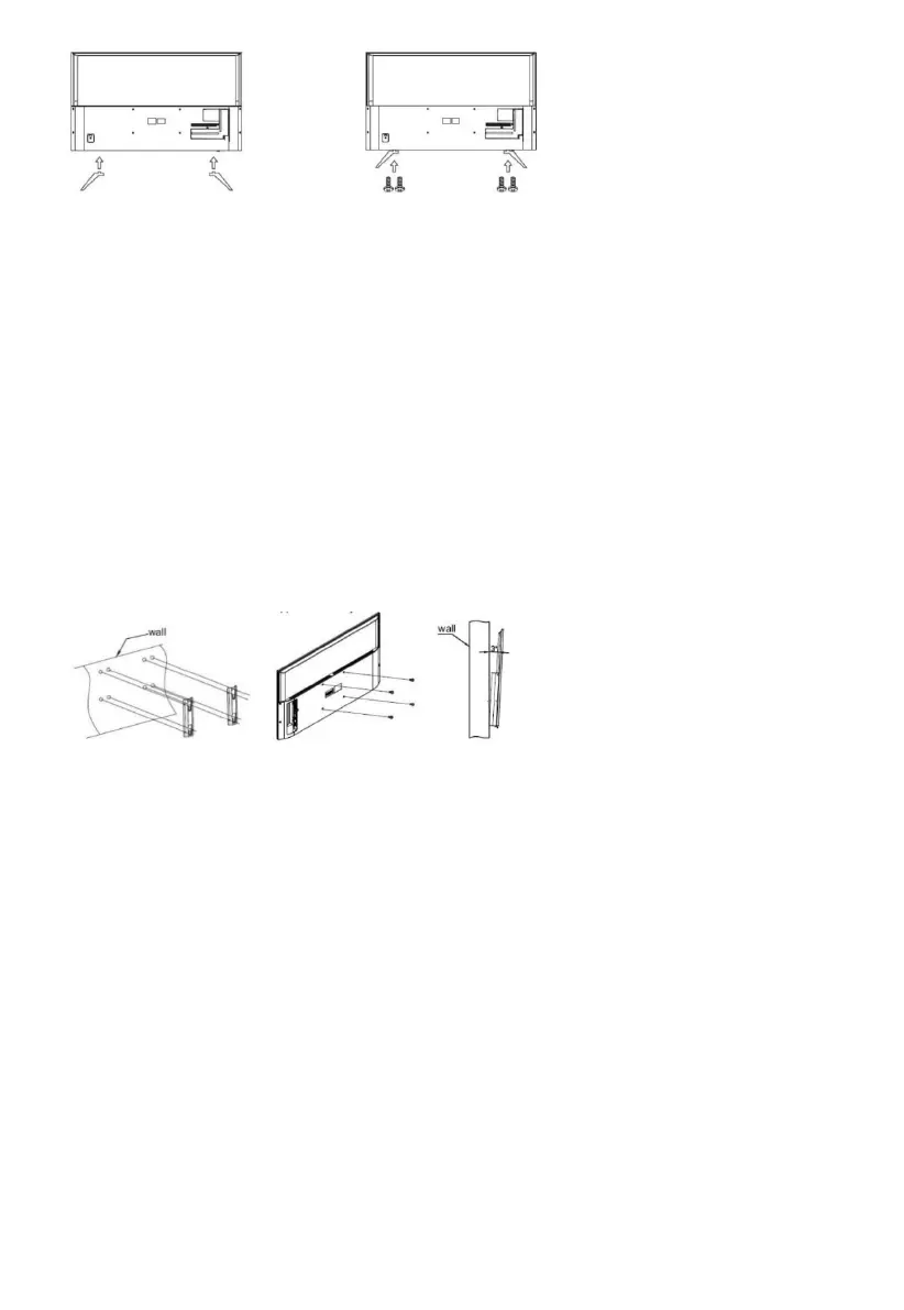 Put the LCD TV with wall mount screws onto the wall mount brackets. Warning: the angle between the TV