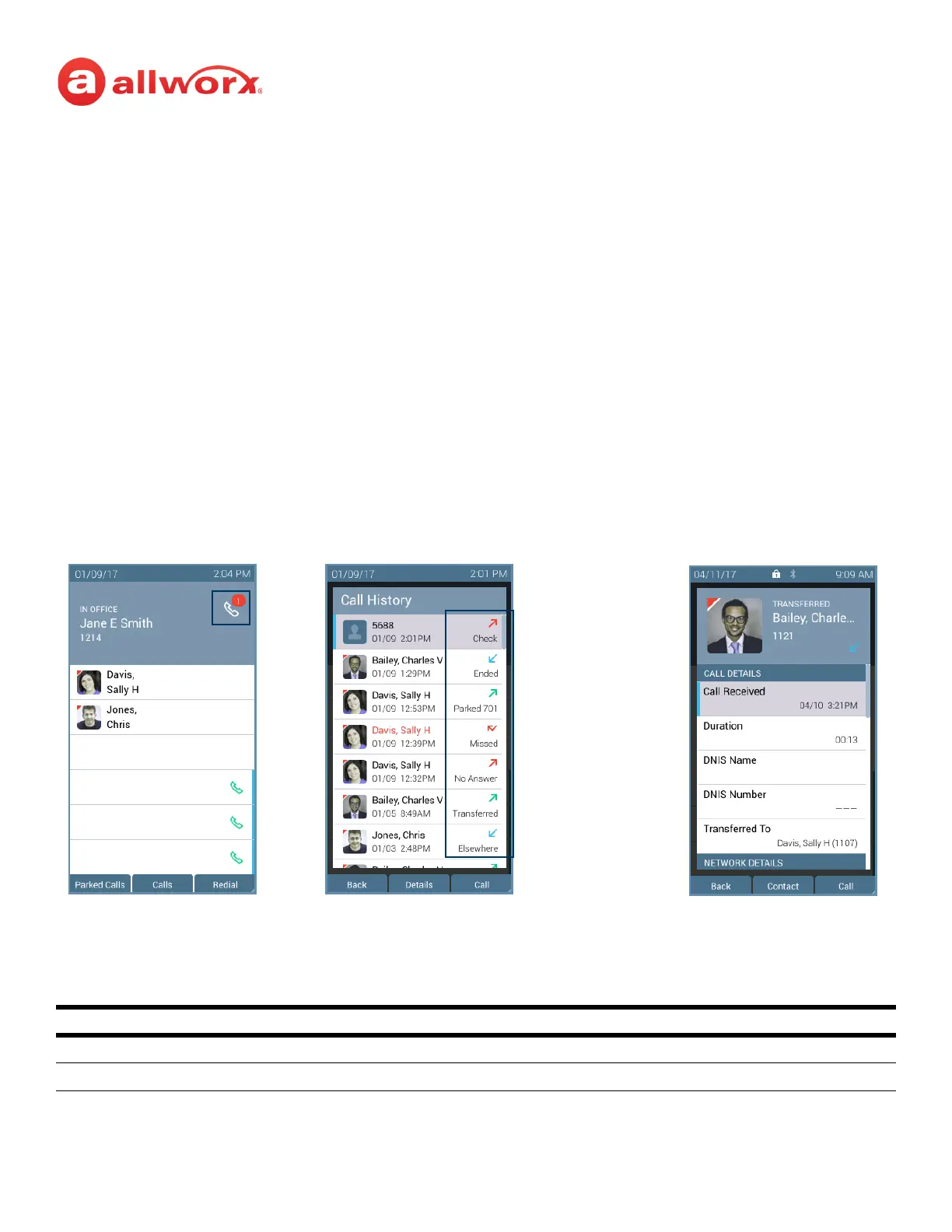 • Contact image (if available)/Allworx User badge