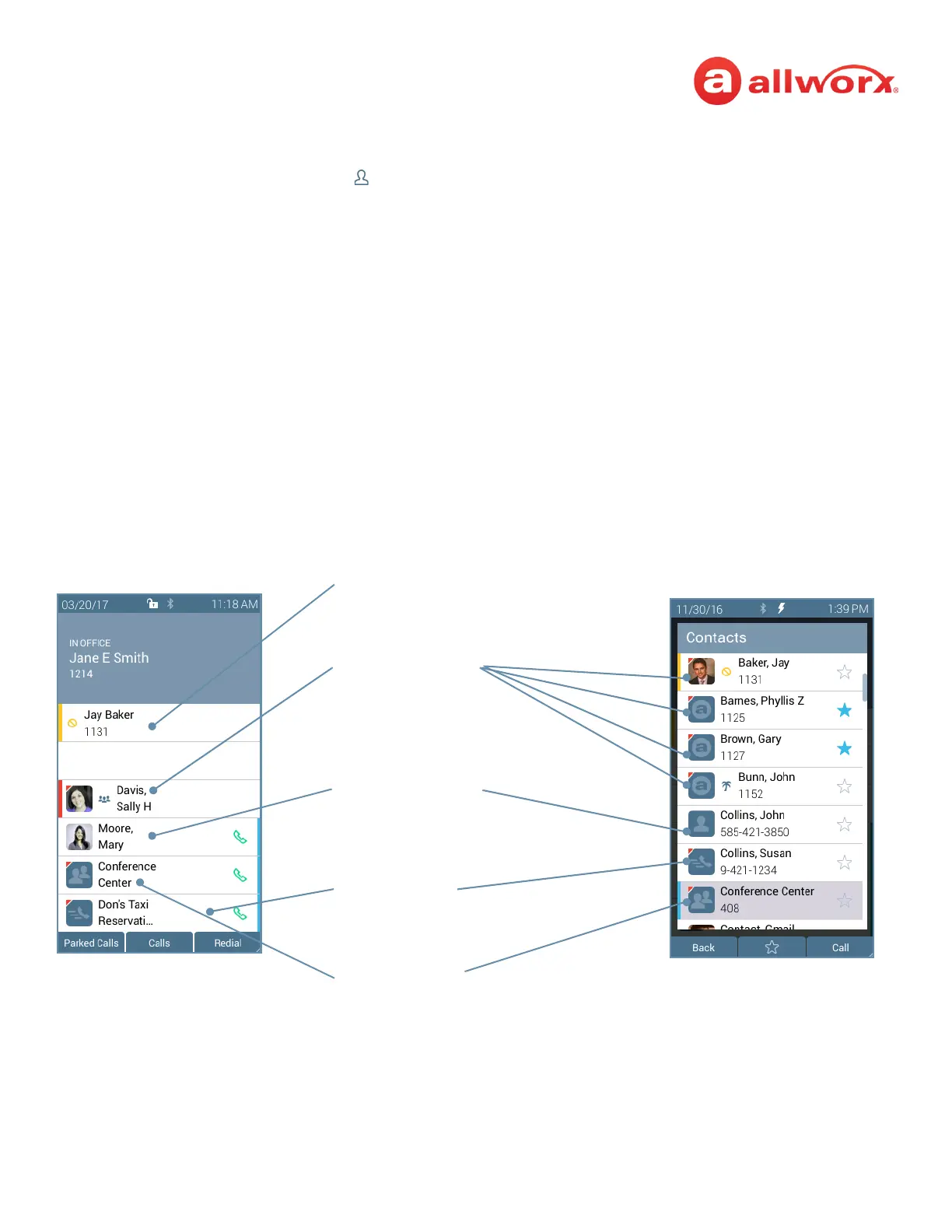 • image and Allworx directory badge (if either are available) • favorite status