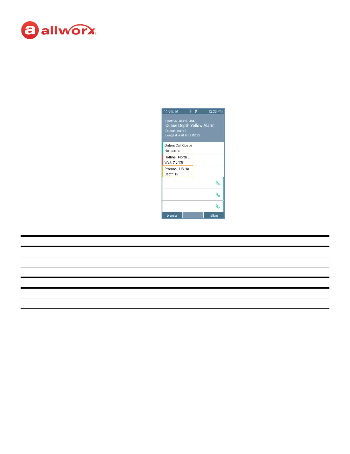 configured, the queue alarm produces an audible alarm with the queue status displayed on the Verge