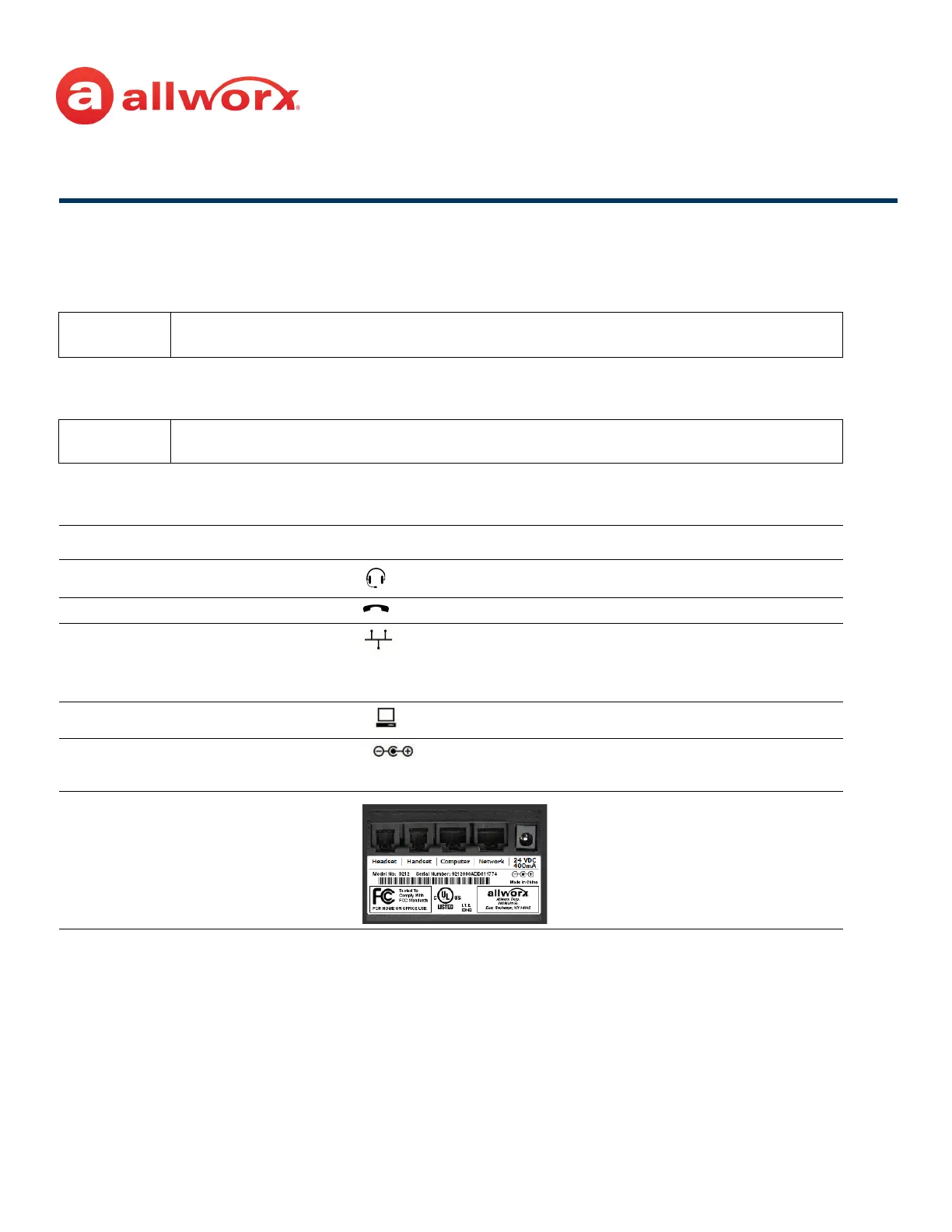 Phone DC jack ( ). Allworx recommends using a surge protector.