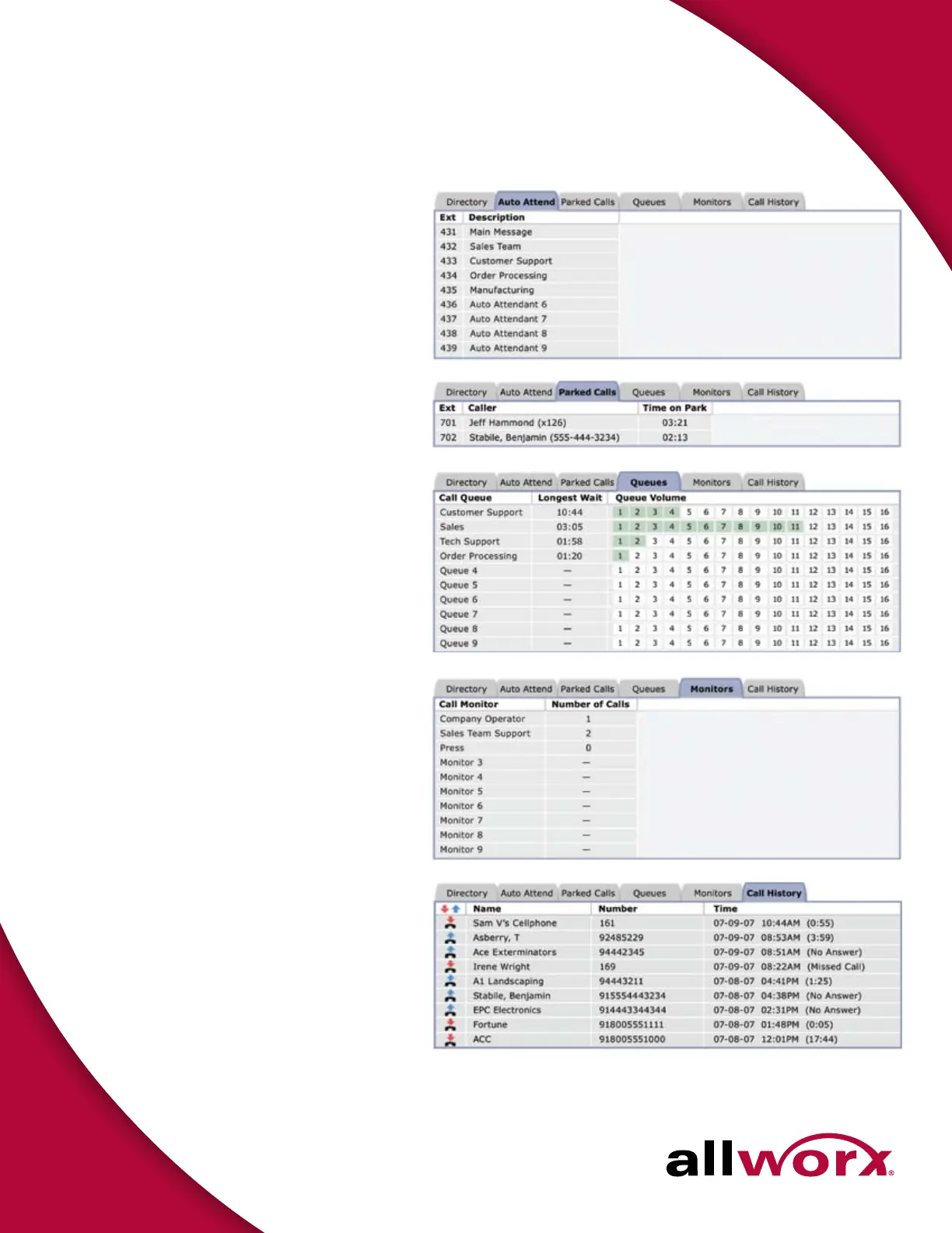 Allworx Call Assistant Switchboard Tabs