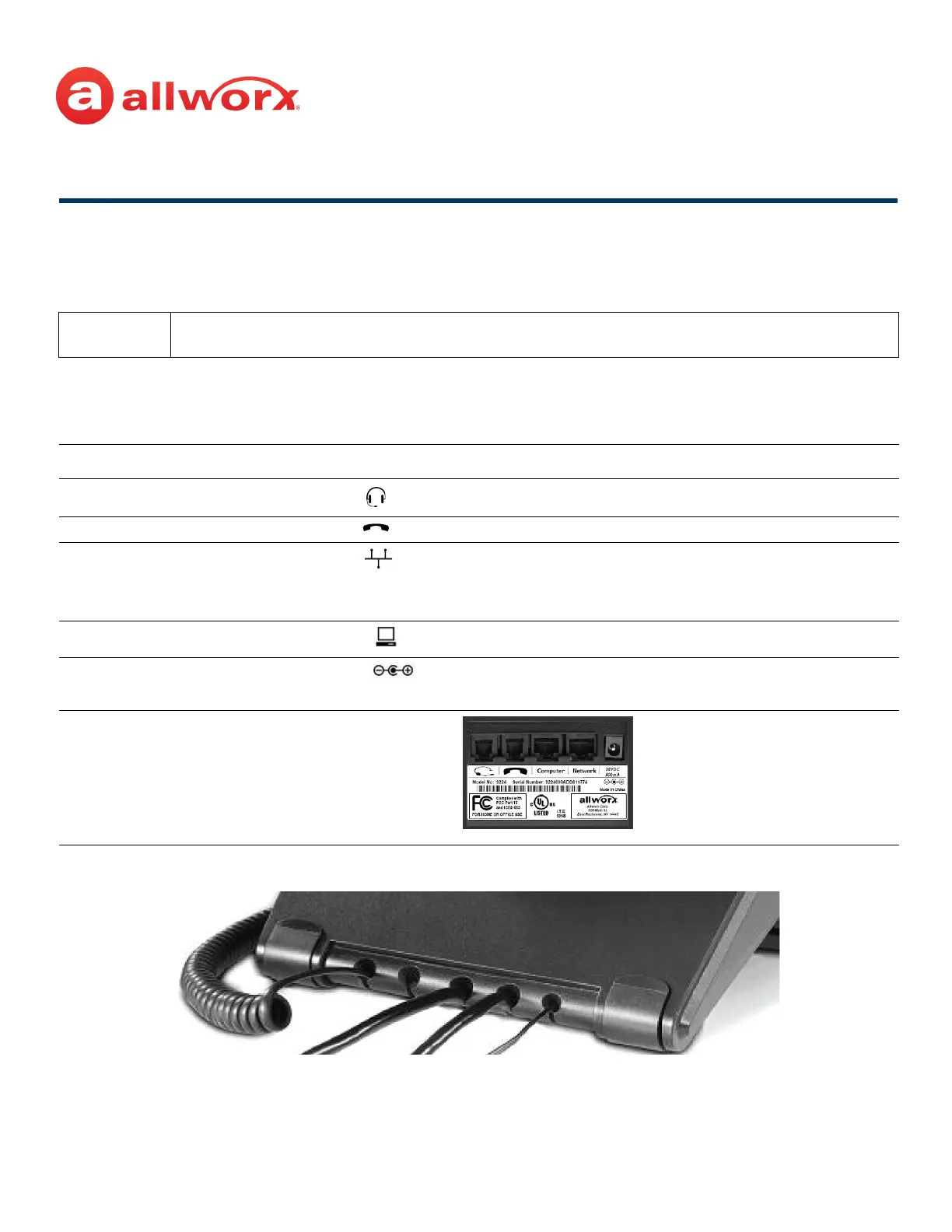 Phone DC jack ( ). Allworx recommends using a surge protector.