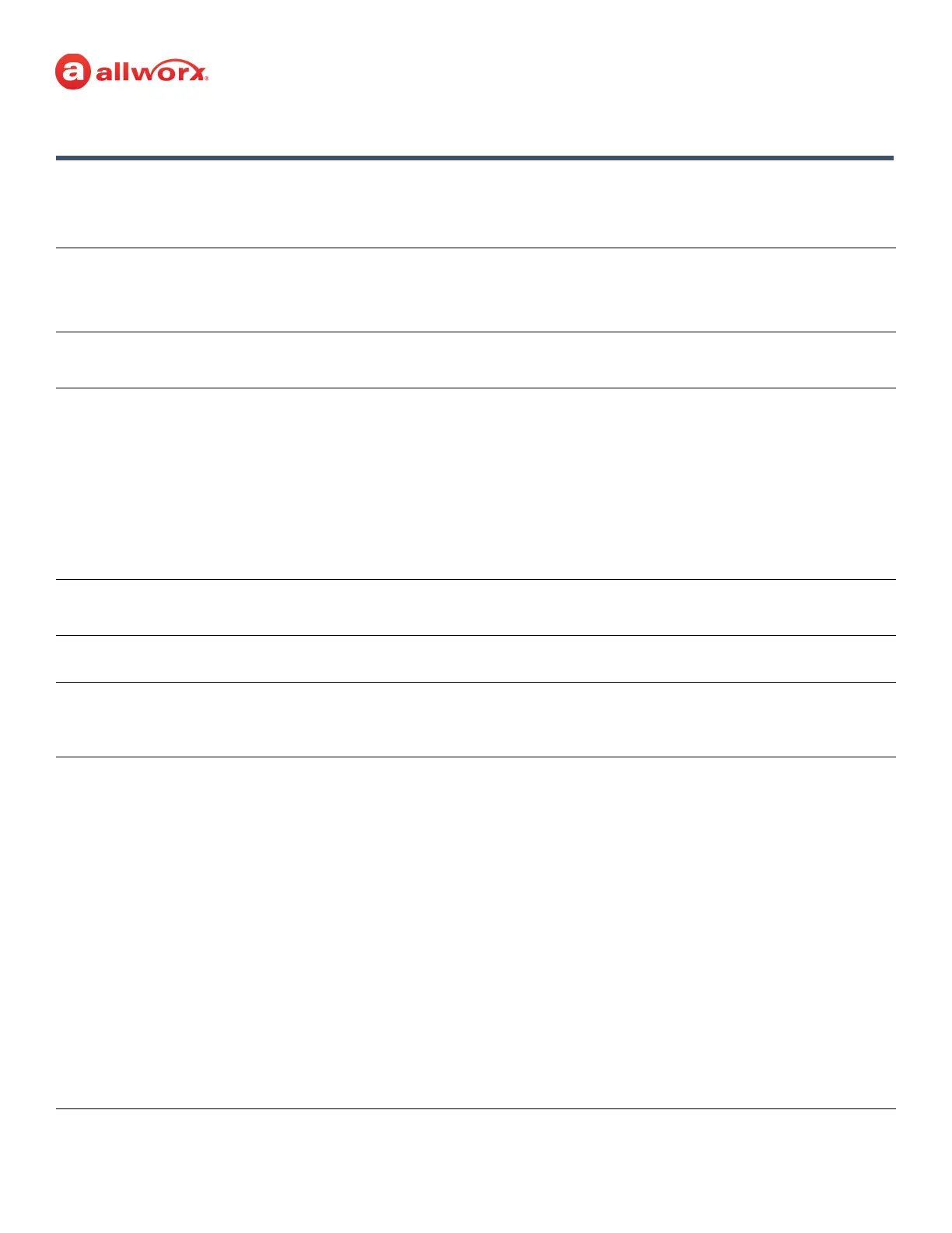 The Allworx System restores the following settings to the Factory Defaults when performing a