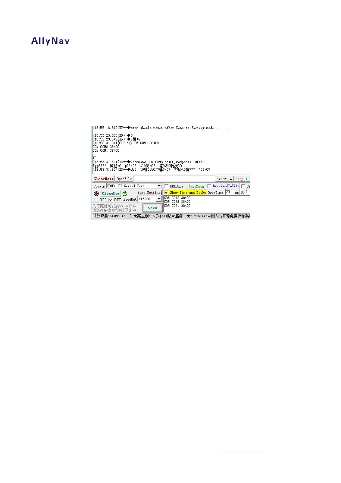 together. We change the Baud rate of COM1 to 38400 after sends
