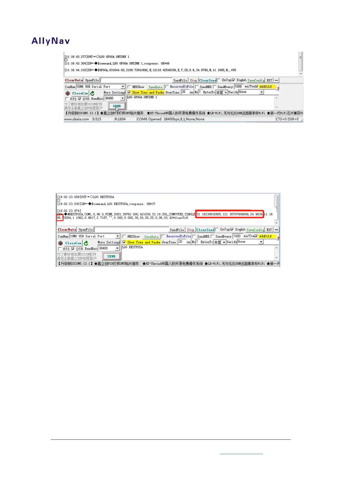 Figure 15 COM2 Output GPGGA ONTIME1