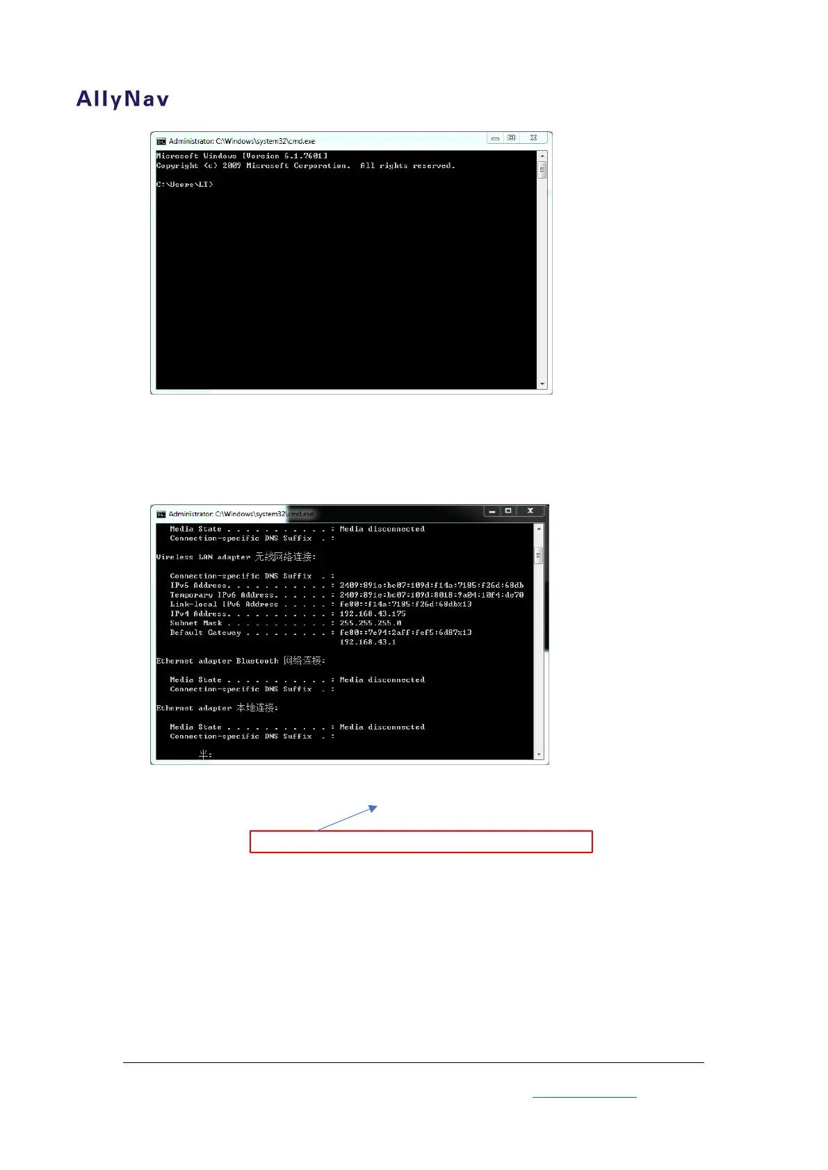 Type in “ipconfig” and click “Enter” on keyboard to obtain IP