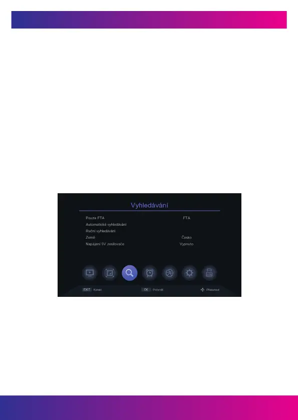 V této nabídce můžete zapnout nebo vypnout napájení 5V pro anténní zesilovač.