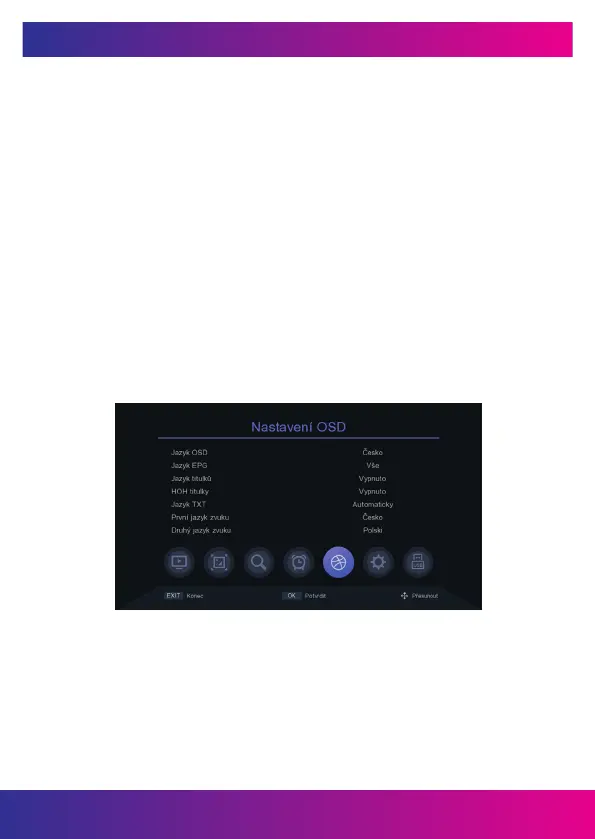 1. Jazyk OSD: Nastavte jazyk nabídky.