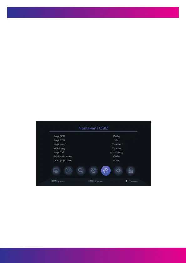 1. Jazyk OSD: Nastavte jazyk ponuky.