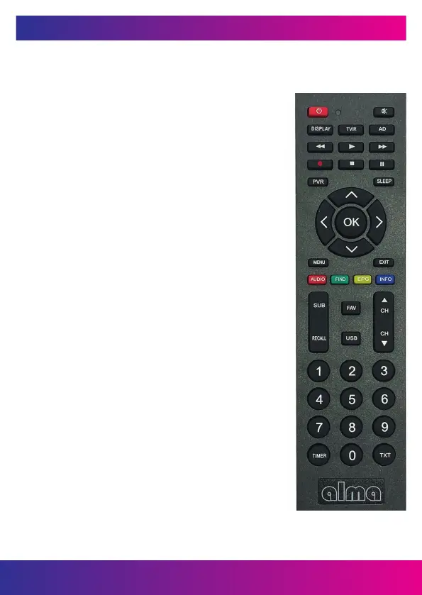 28. NUMERIC BUTTONS (0 ~ 9): Enter TV number /