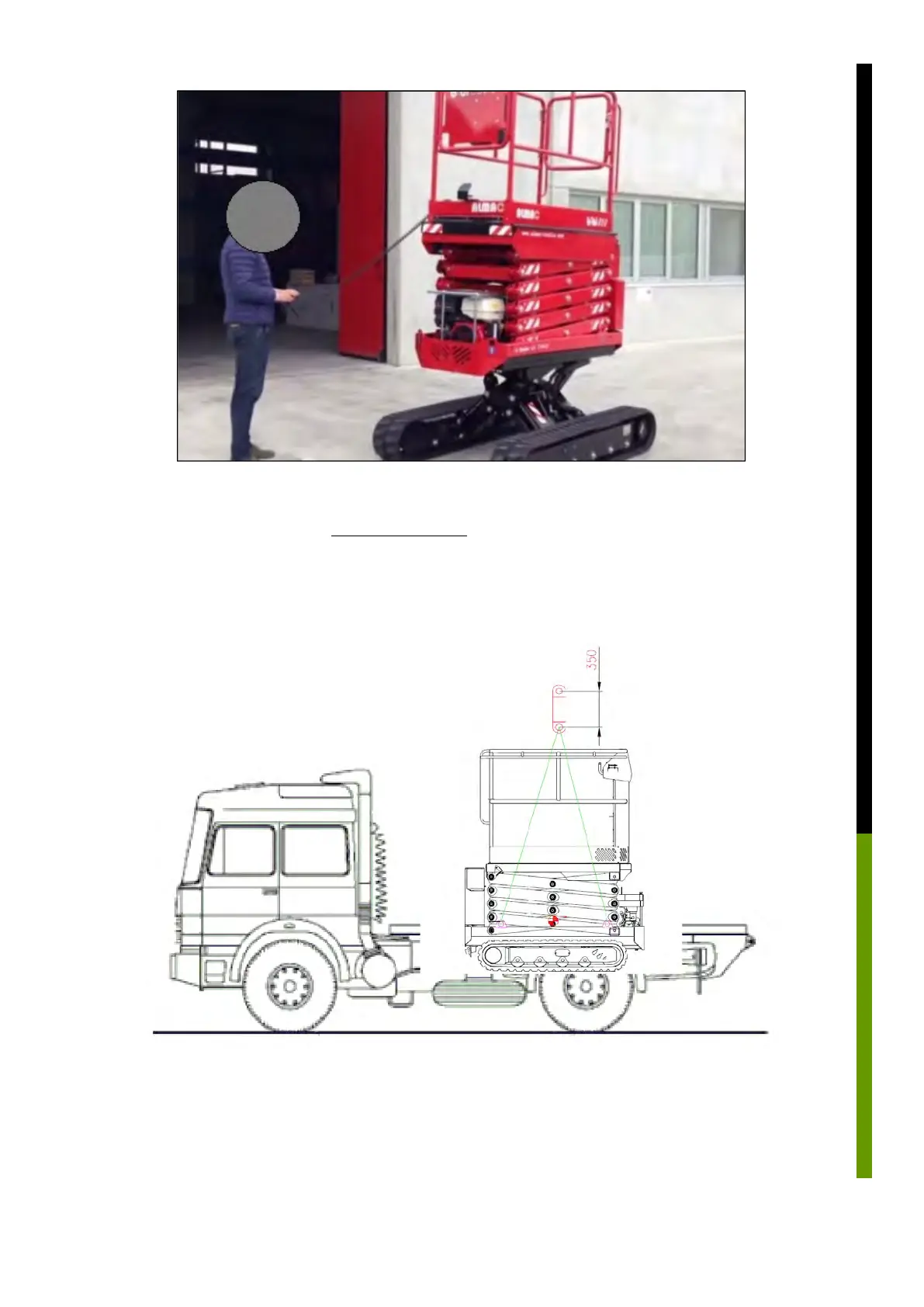 3) Lifting the platform using a CE certified beam (not included) that should have a vertical distance