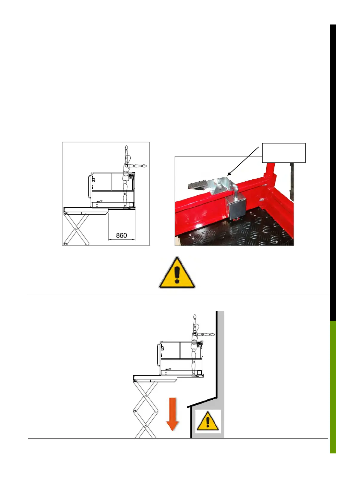 Attention: during descent from working at heights, be careful of obstacles below the basket to prevent