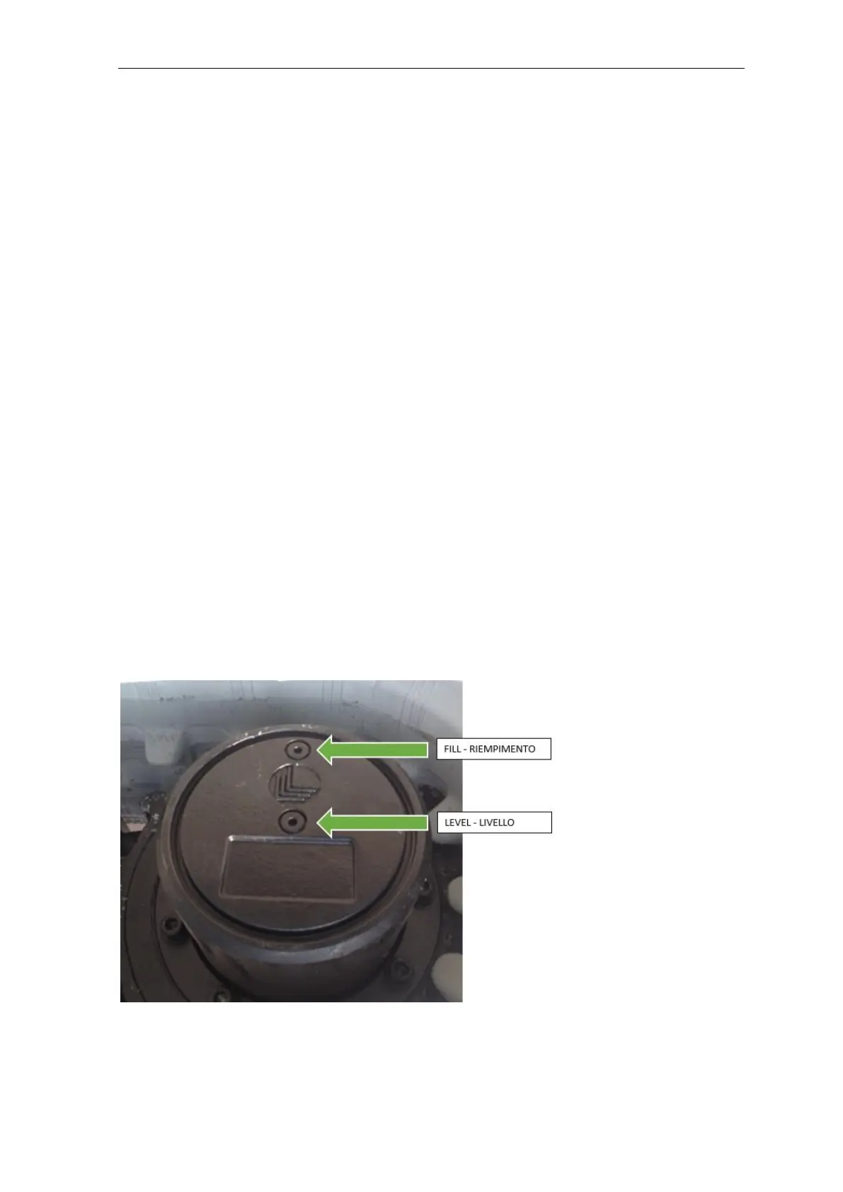 1- Move until the gear motor is in the condition in which the "FILL" cap is at