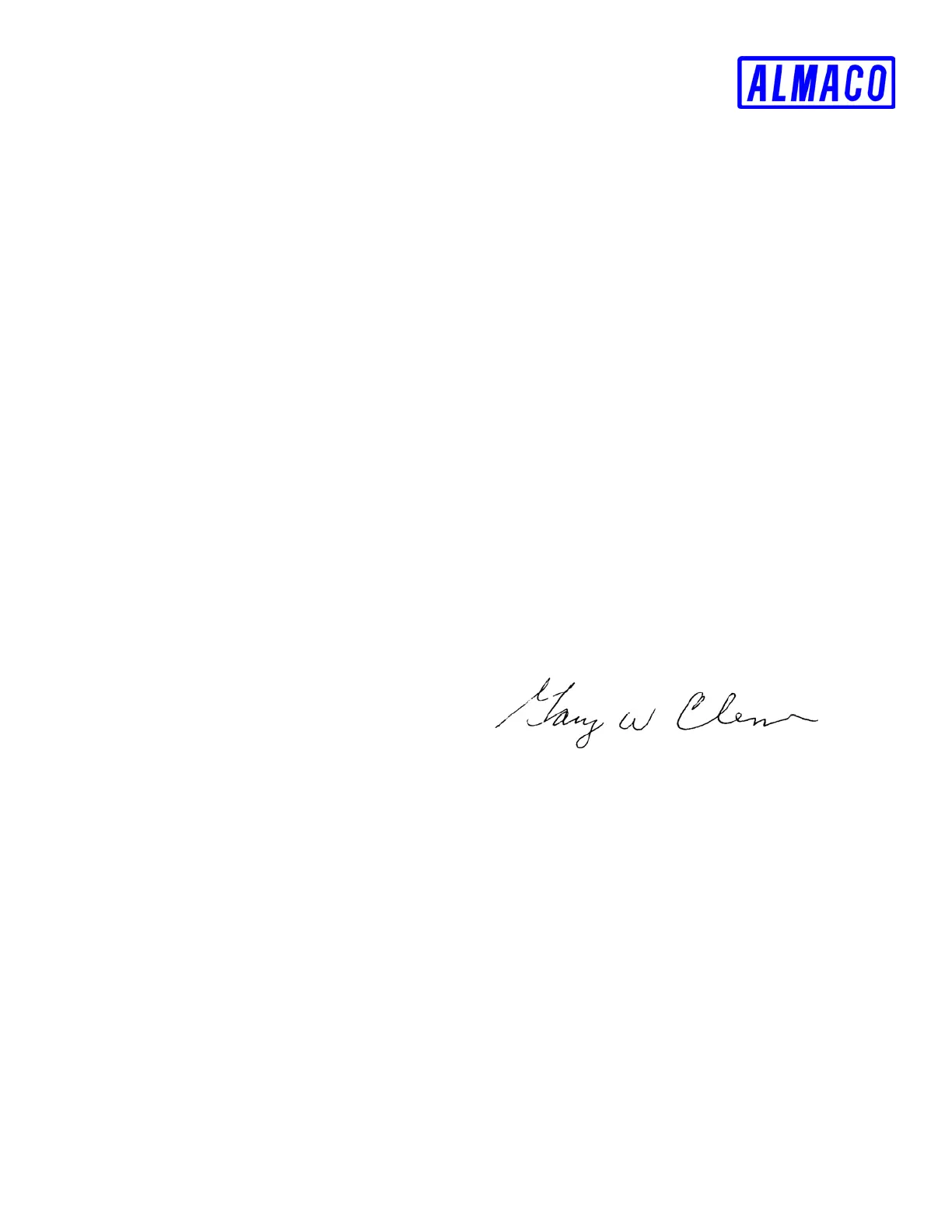 We at ALMACO wish to extend to each customer our thanks and congratulations for your