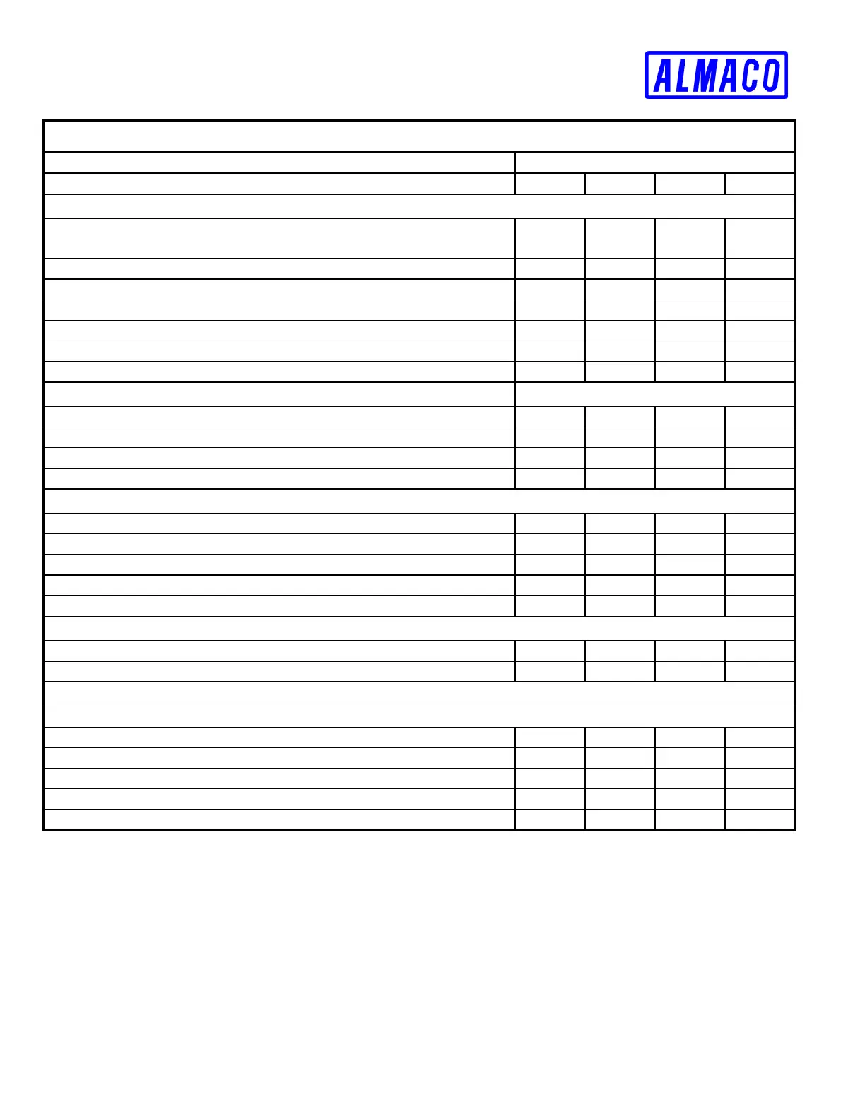Key: X = Required service interval