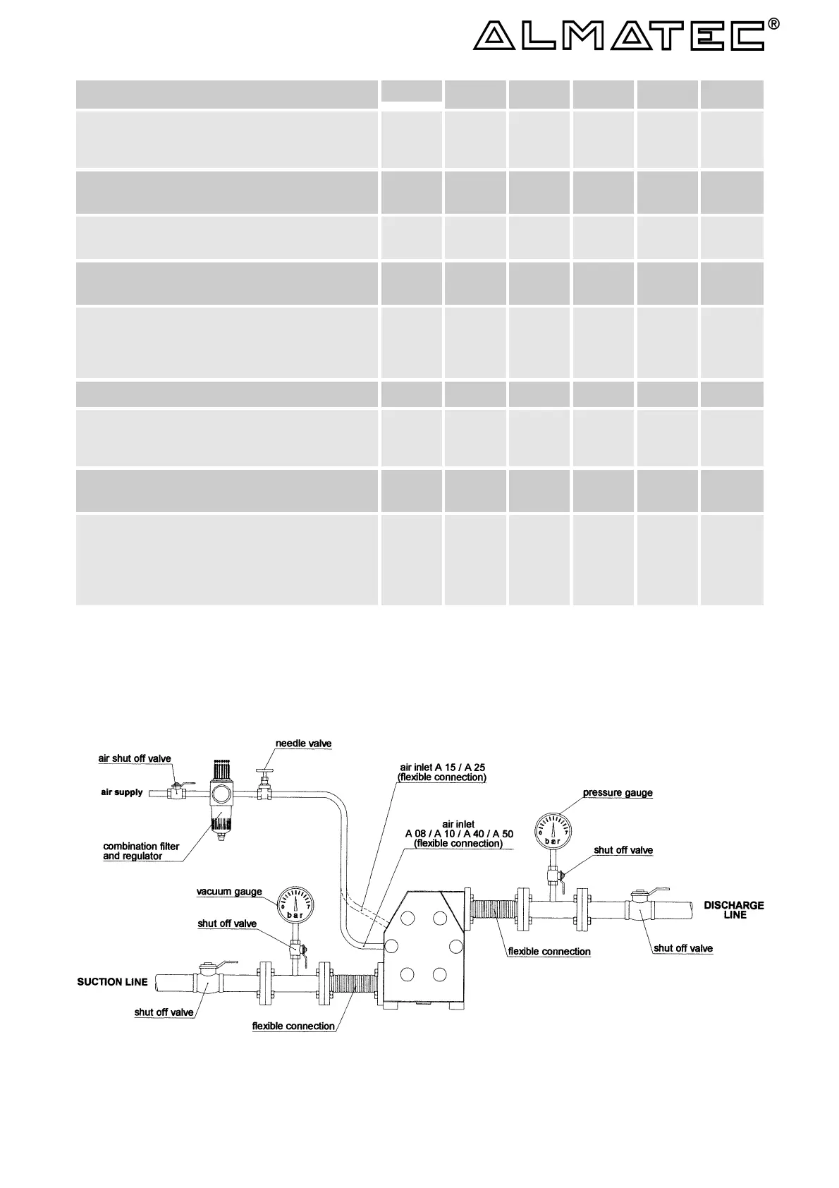These technical data are for ALMATEC A-Series pumps without optional equipment.