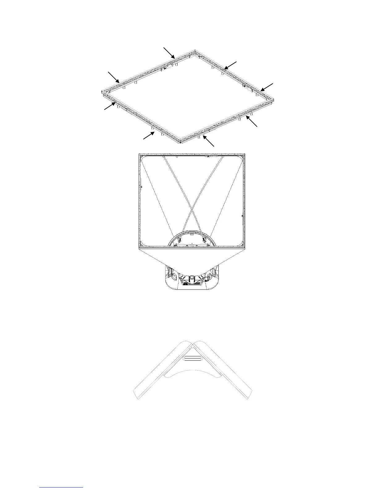 Figure 20: 3 ft 3 ft (915 mm 915 mm) hood and frame. The support poles always cross as pairs at the
