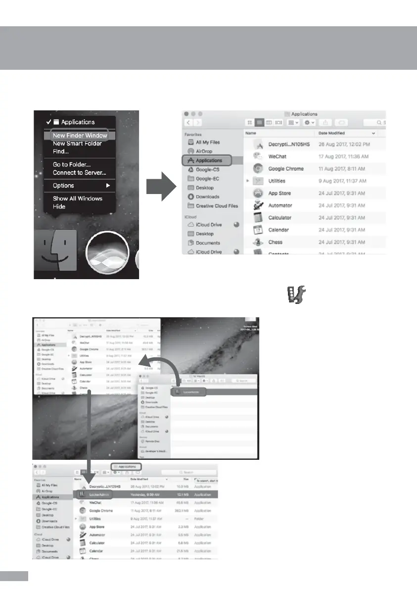 3. After you have opened above two Finder Windows, you have to copy “ LockerAdmin”