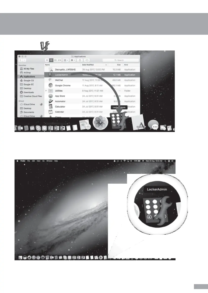 4. Dropping “ LockerAdmin” into Dock as a short cut to open the application.
