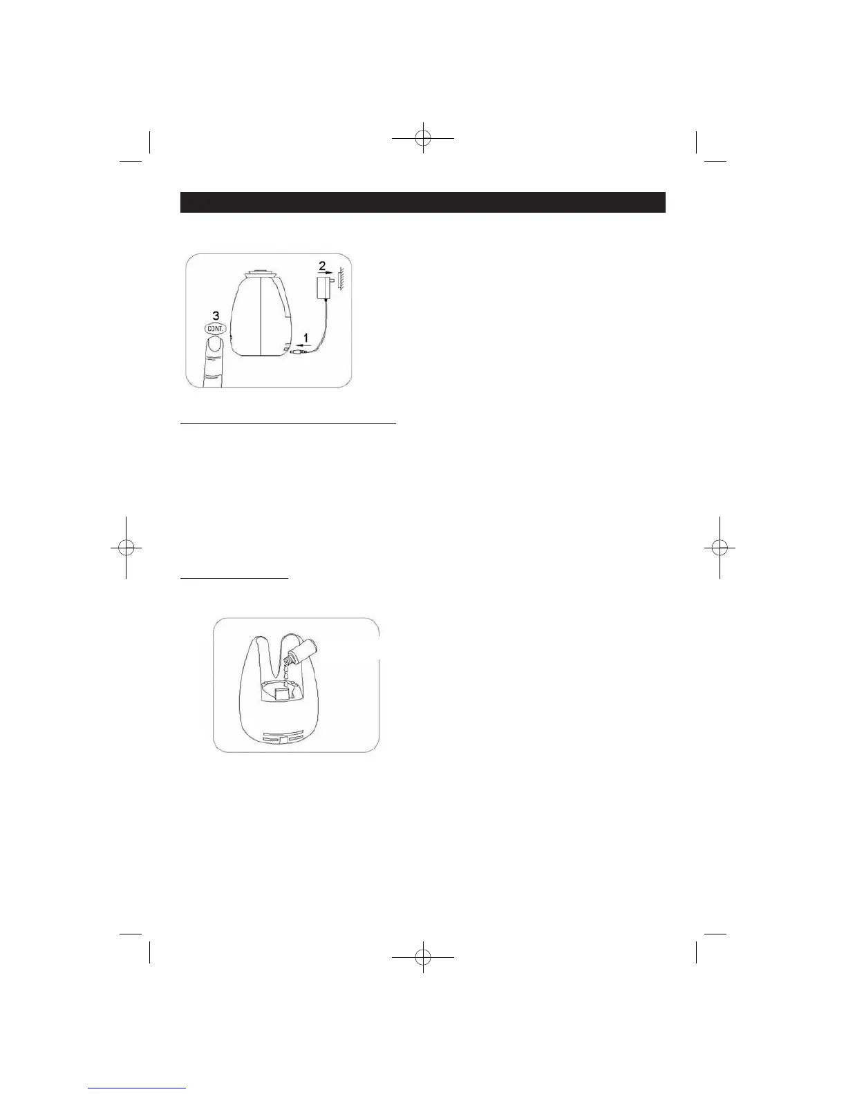 - Diffusion continue sans lumière : appuyer deux fois sur la touche CONT.