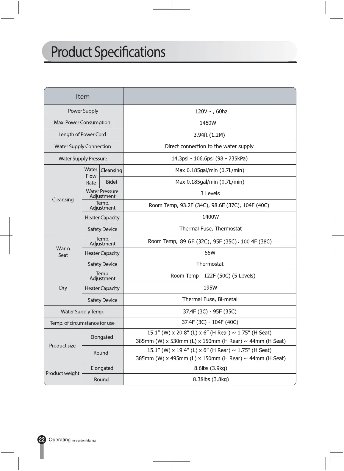 Alpha Bidet JX2-EW - 23 P alpha specs