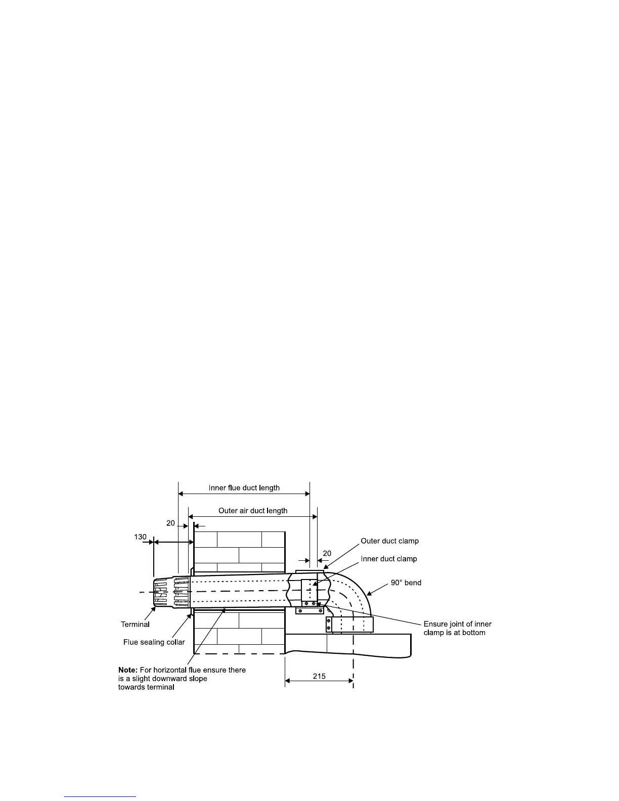2. If the overall length of the inner duct is greater than 750 mm then a flue extension is required. To fit an extension refer to