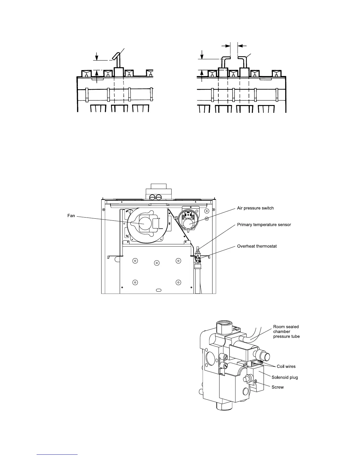 3. Remove the two fixing screws and remove the overheat thermostat from the heat exchanger.