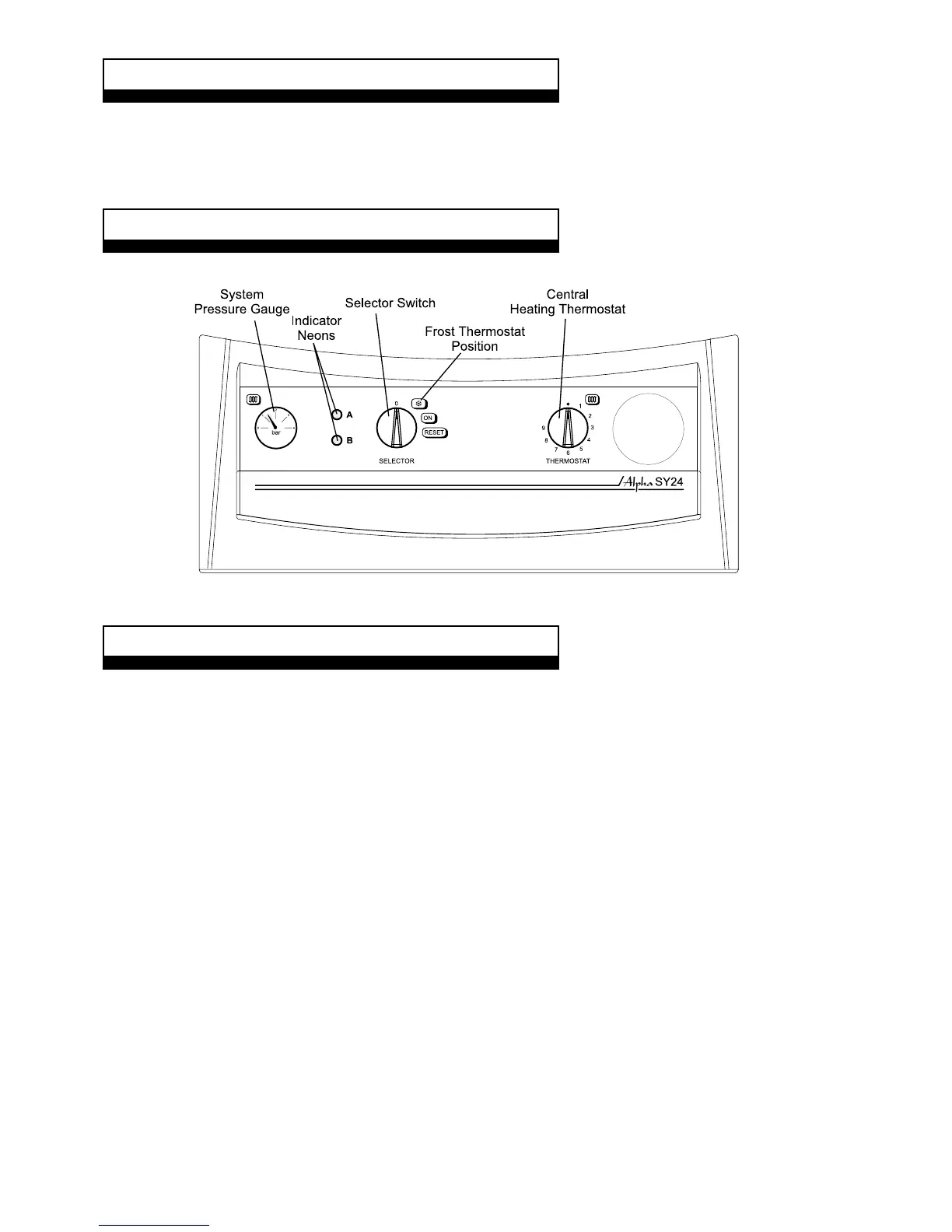 This control is used to turn the boiler on and off or to 'reset' the ignition sequence or to set to the frost thermostat only.