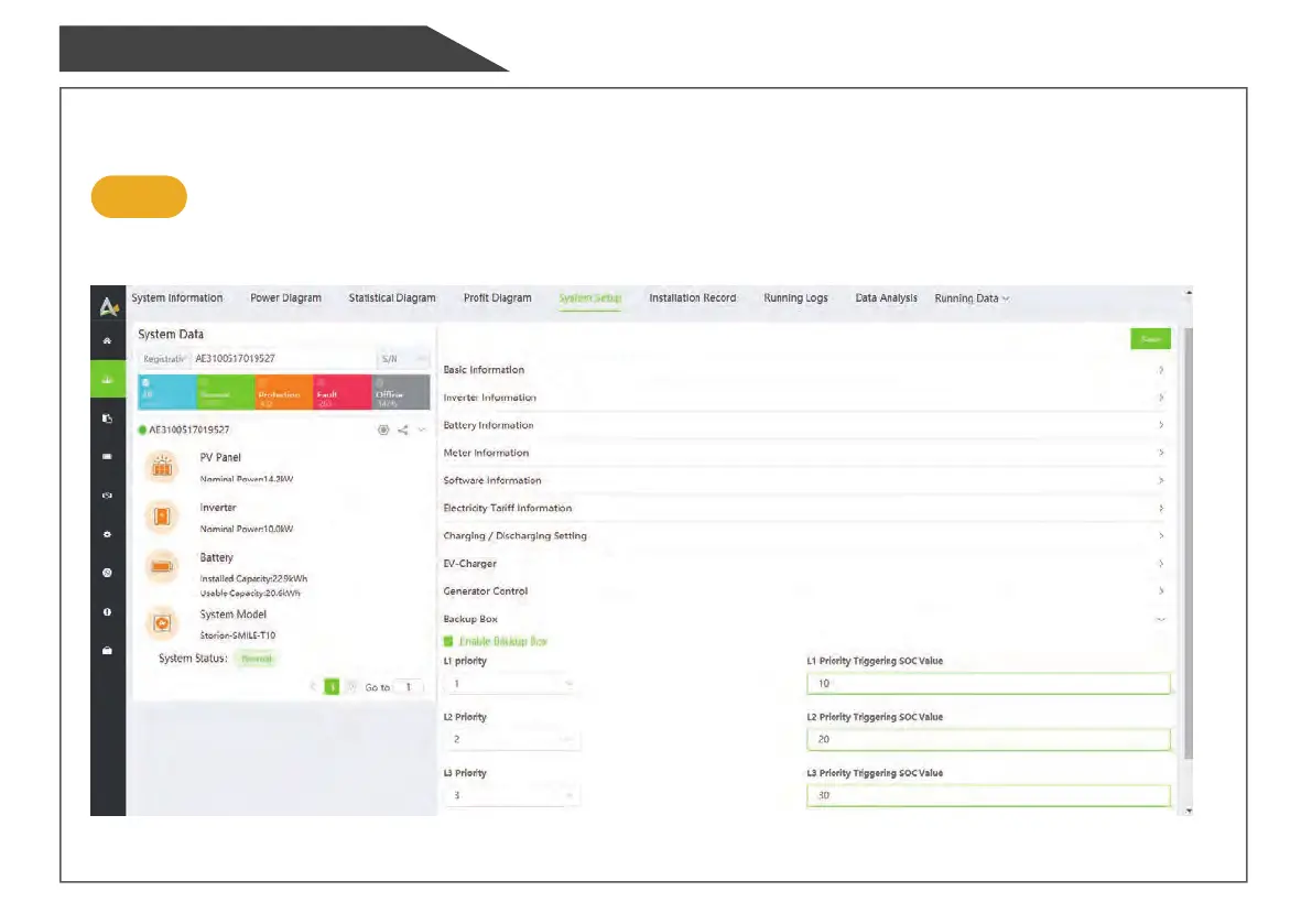 Select "Enable Backup Box" and set different priorities and minimum SOC values for each phase.