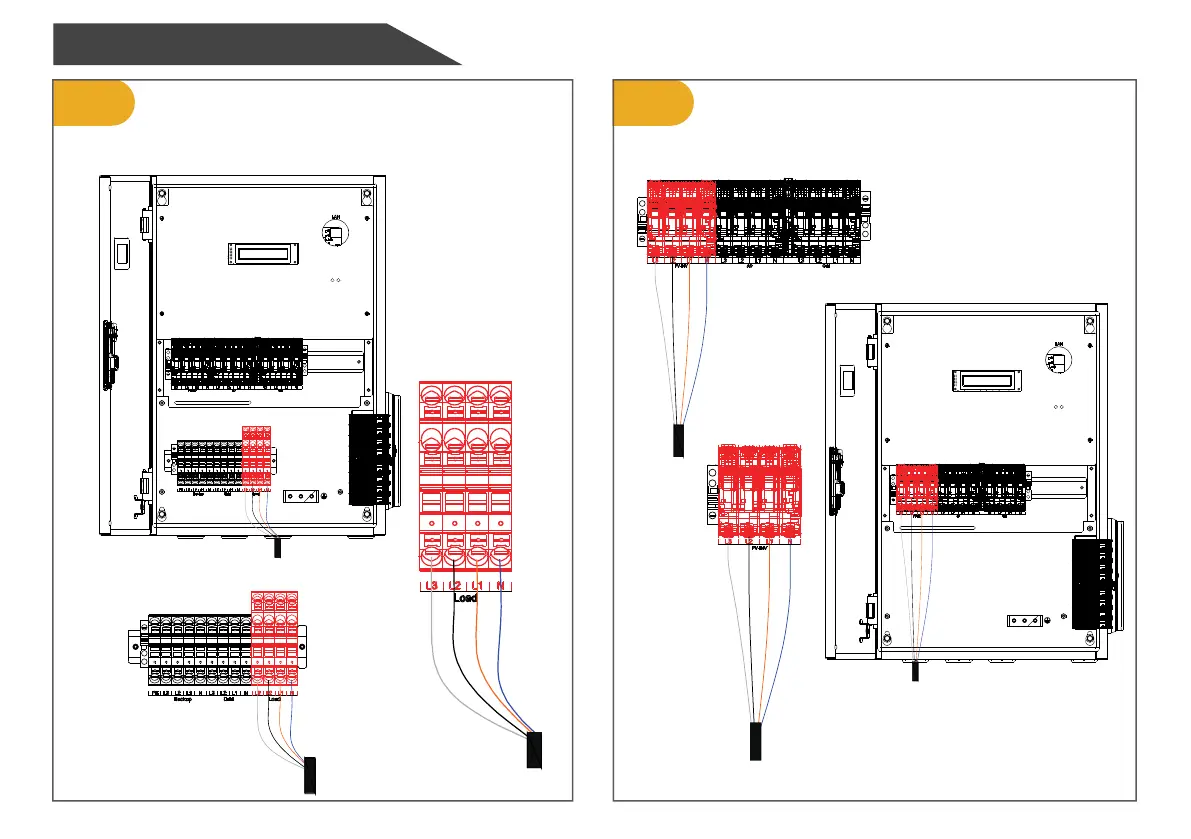 Connect the Load cables. Connect the PV-INV cables.