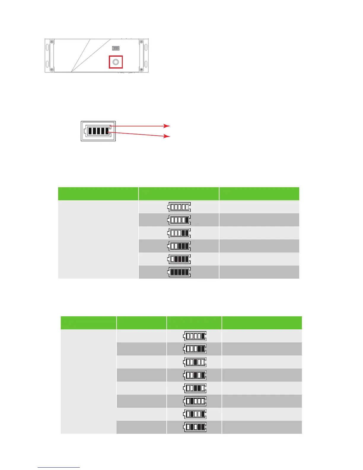 Note: When the battery is working pressing the power button for <5 seconds, LCD display will