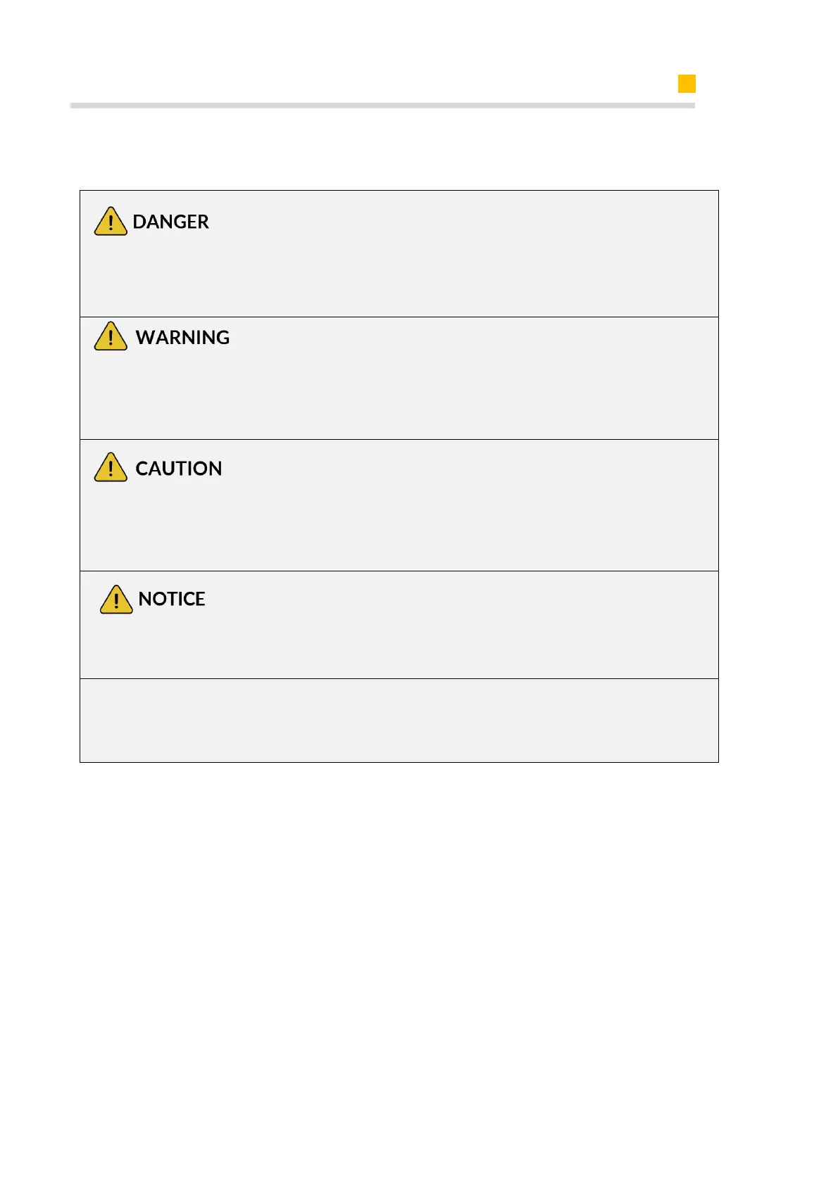 The following levels of warning messages may occur when handling the product